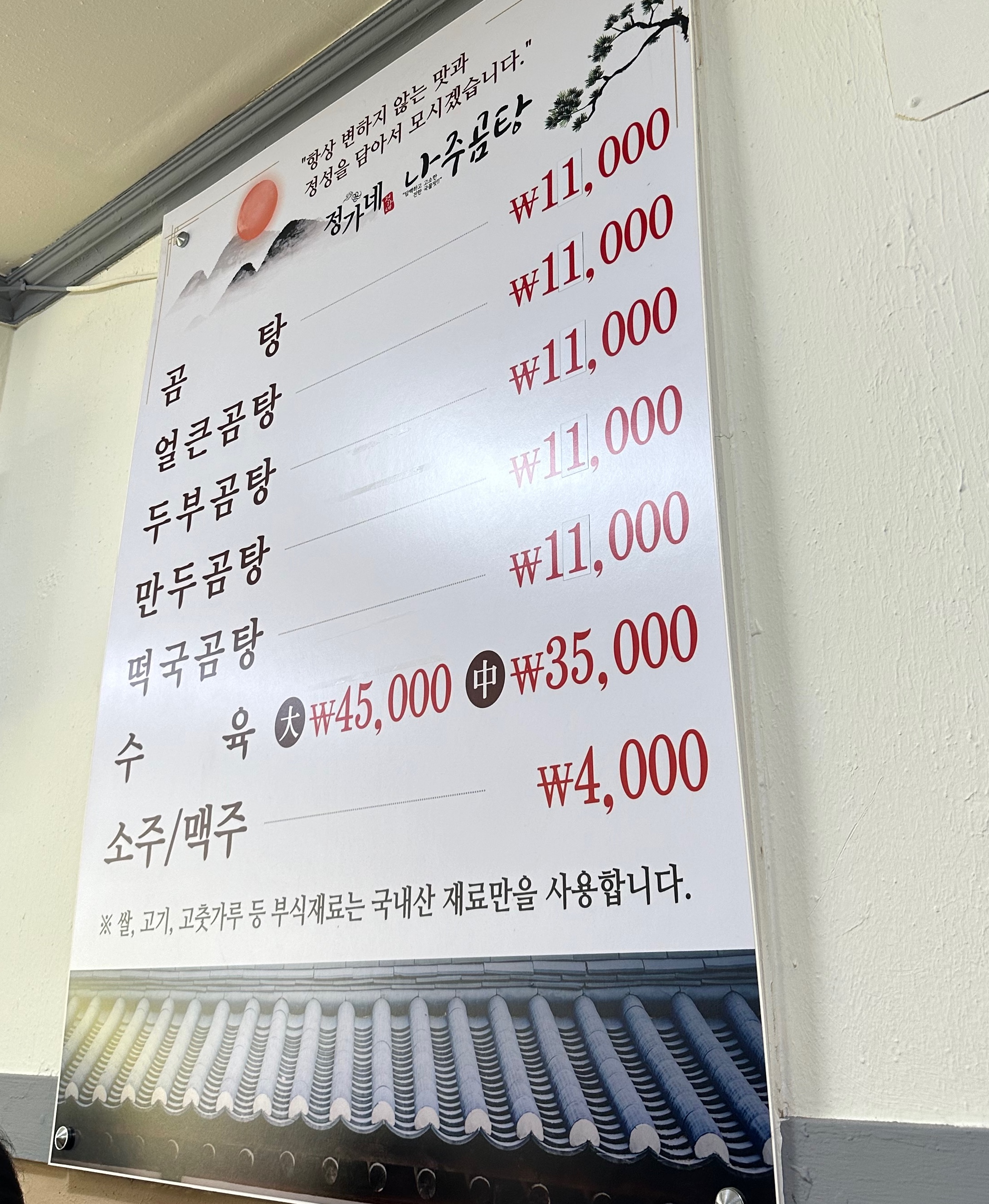 가격: 곰탕 11000원 ( 네이버에는 10.000원이라고 나왔으나 11.000원입니다)