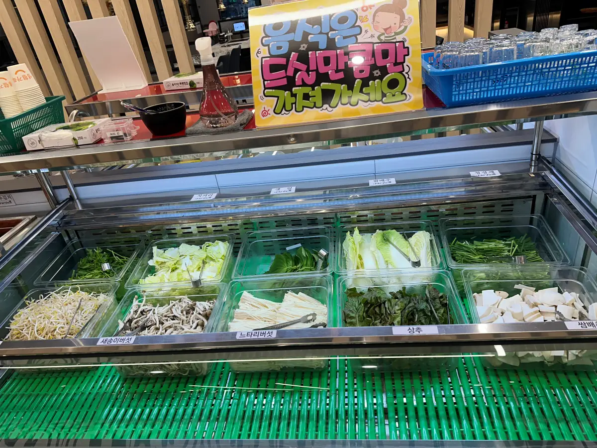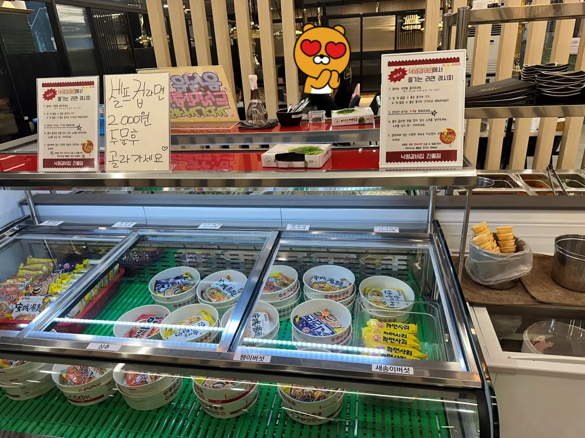 세트메뉴에 우삼겹 샤브샤브도 있었는데, 샤브용 고기는 1회 리필이 가능하다고 해요. 셀프바도 있어, 야채와 육수 등을 가져다 먹을 수 있어요. 라면도 판매하고 있는데, 맛있어 보이네요.