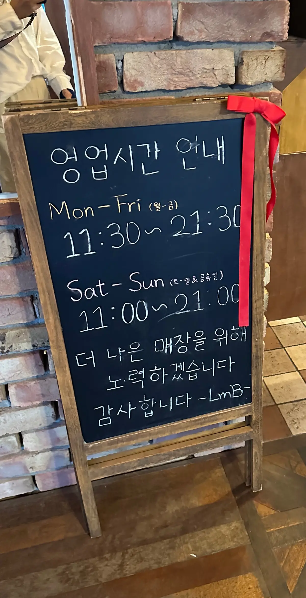 영업시간 : 11:30 - 21:30 (월-금)   11:00-21:00 (토-일 공휴일)