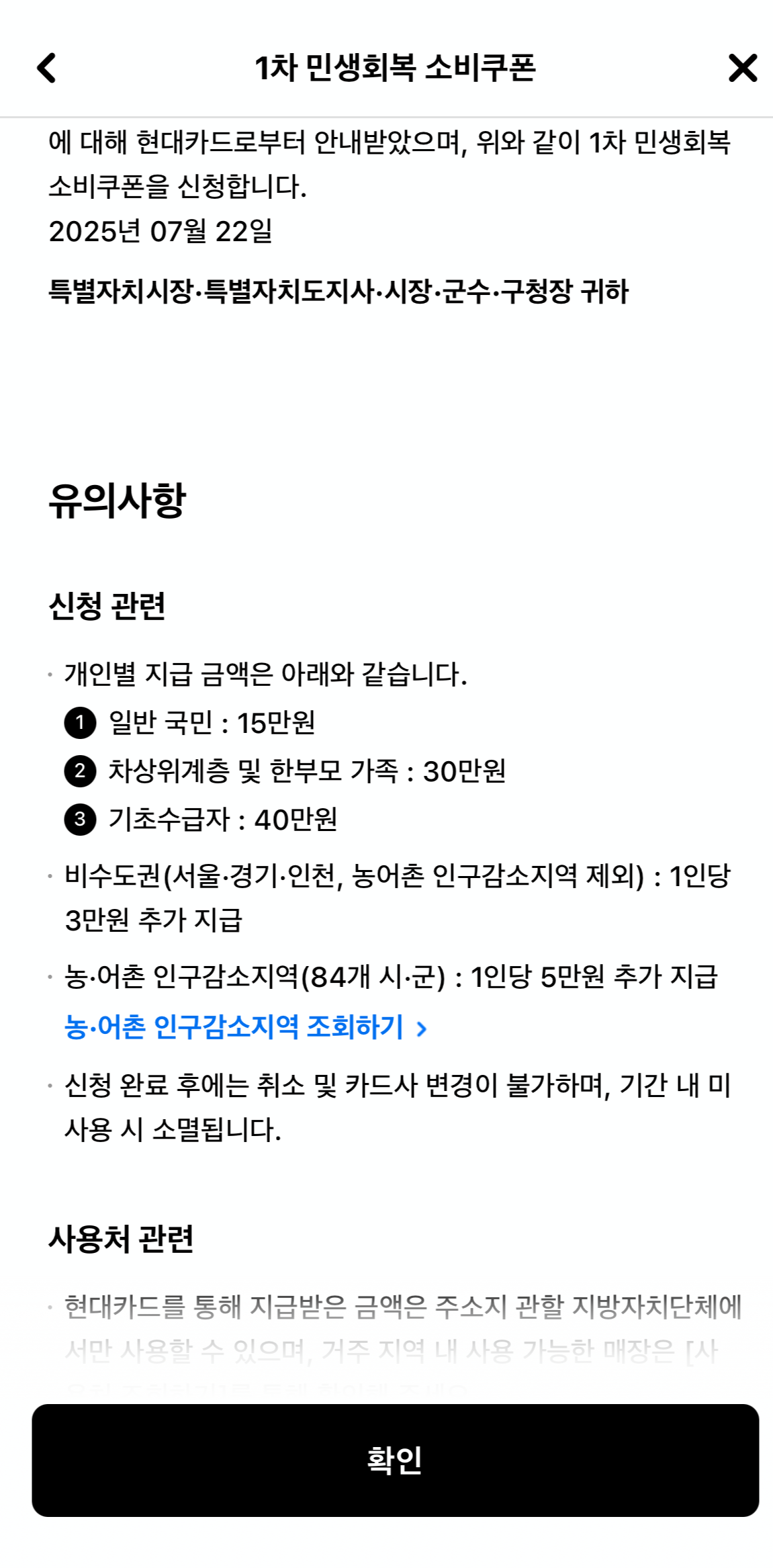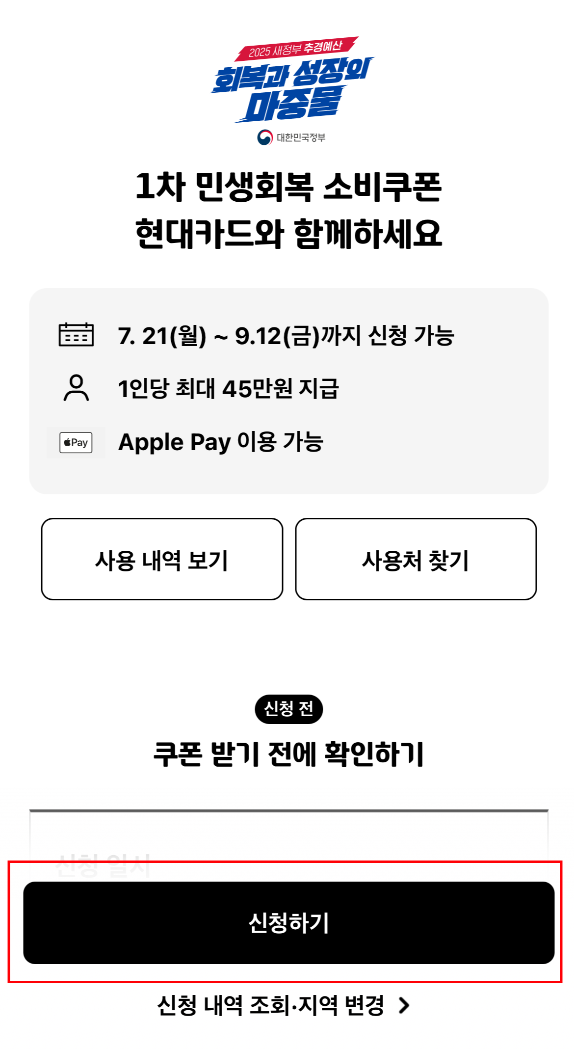 민생회복 소비쿠폰 - 현대카드로 신청하기, 사용처 확인하기