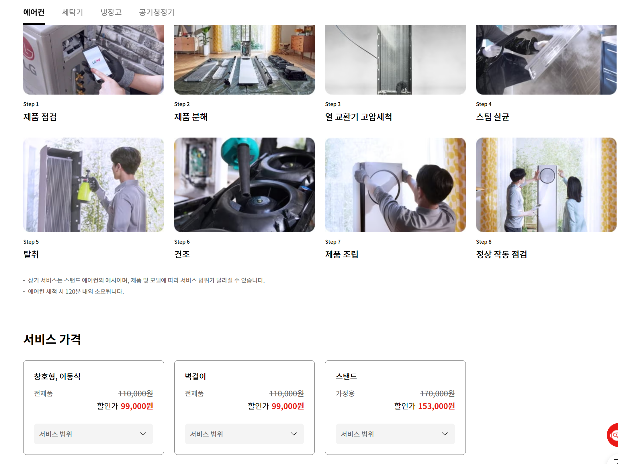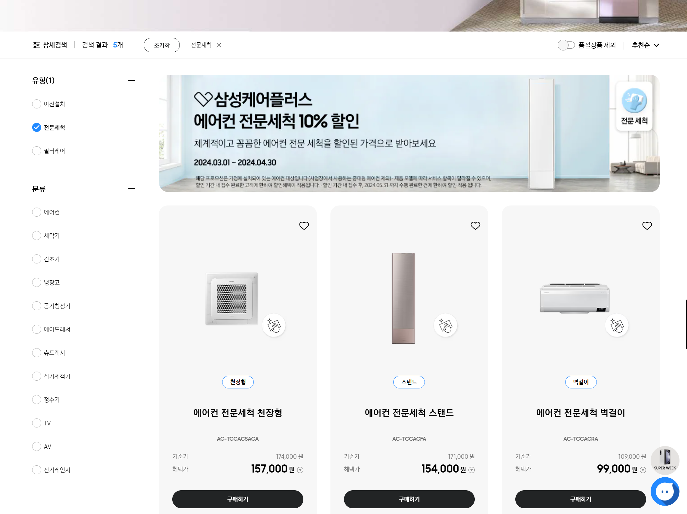 삼성에어컨이니 삼성 케어플러스에서 청소비용을 알아봤는데요. 24.3.1일부터 24.4.30일까지 10% 할인행사를 진행하고 있어요. 할인행사 기간이라 가격은 다른 곳과 큰 차이가 나지 않았어요. 미리 알았더라면 삼성에서 했을 것을... 삼성에서 해주는 것이다 보니 AS도 확실하고 무엇보다 조립도 잘해주고 가지 않겠어요?