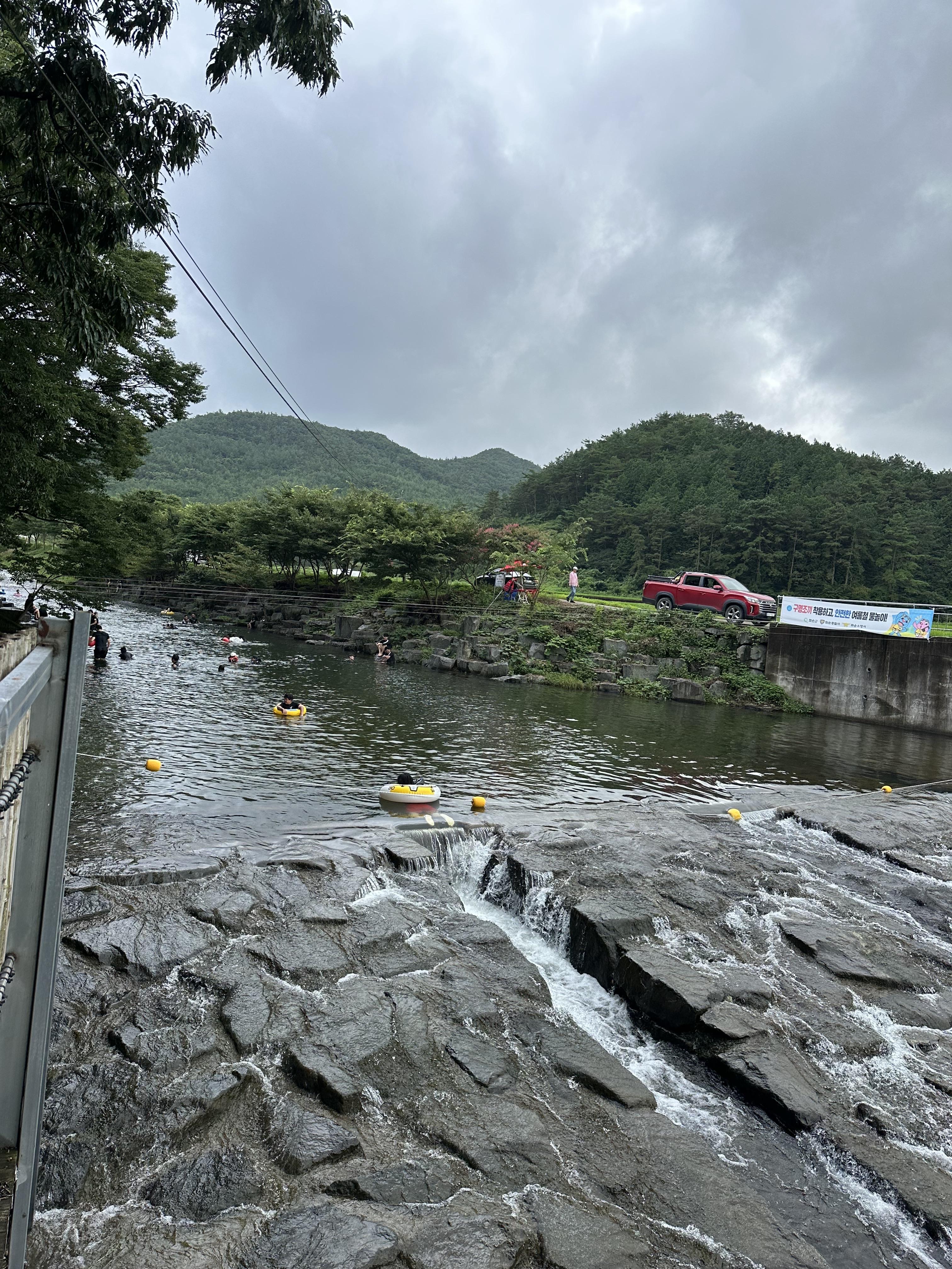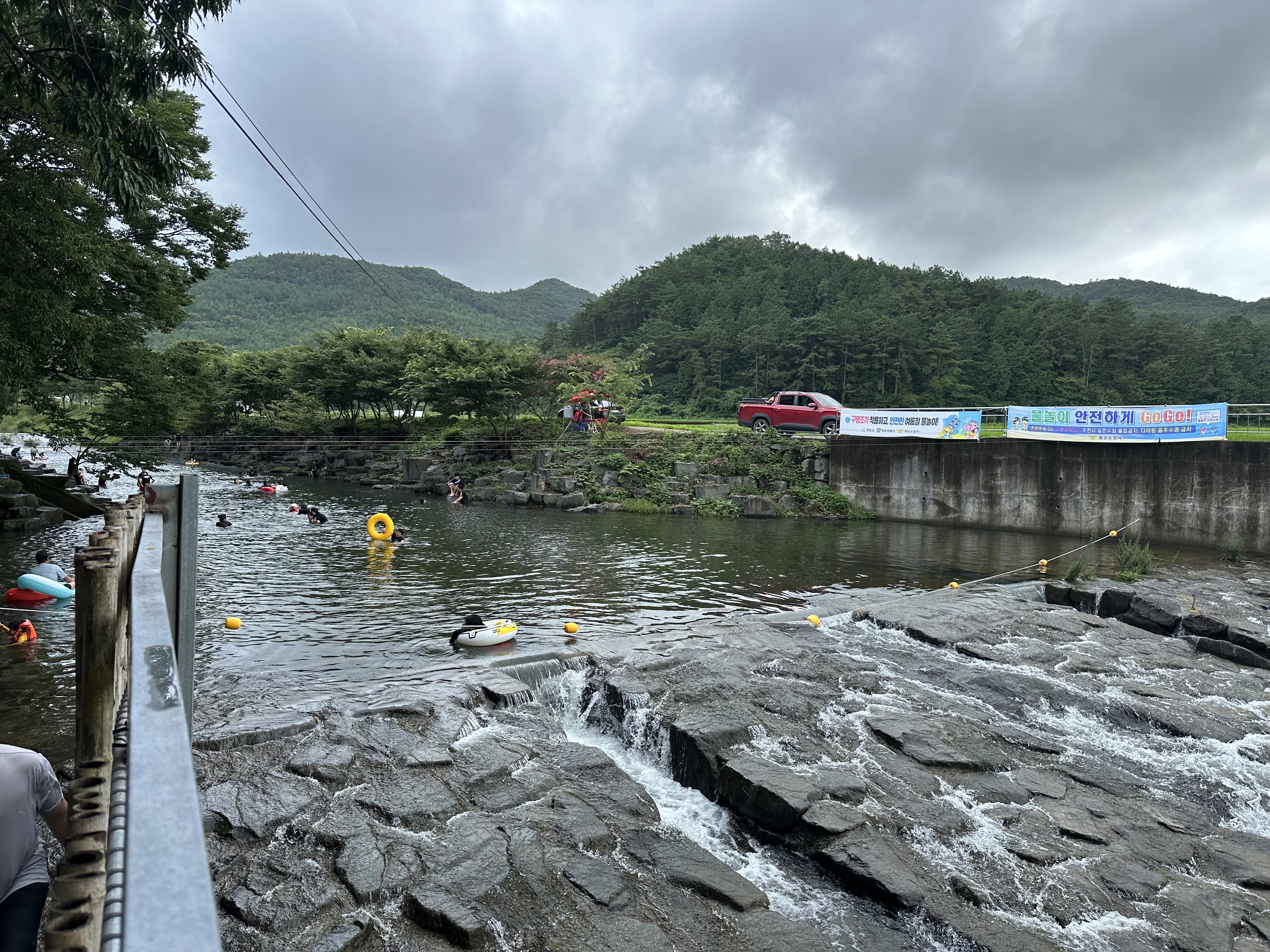 동가리 계곡은 처음 가봤는데 계곡이 크더라고요. 다만, 비가 오는 날 가서 그런지 물이 깨끗한지는 사실 잘 모르겠어요. 같이 간 저희 가족들은 발만 담그고 왔는데요. 물놀이하시는 분들도 많더라고요. 수심은 깊지 않아 보였고, 아이들과 같이 오기에는 적합할 것 같아요.