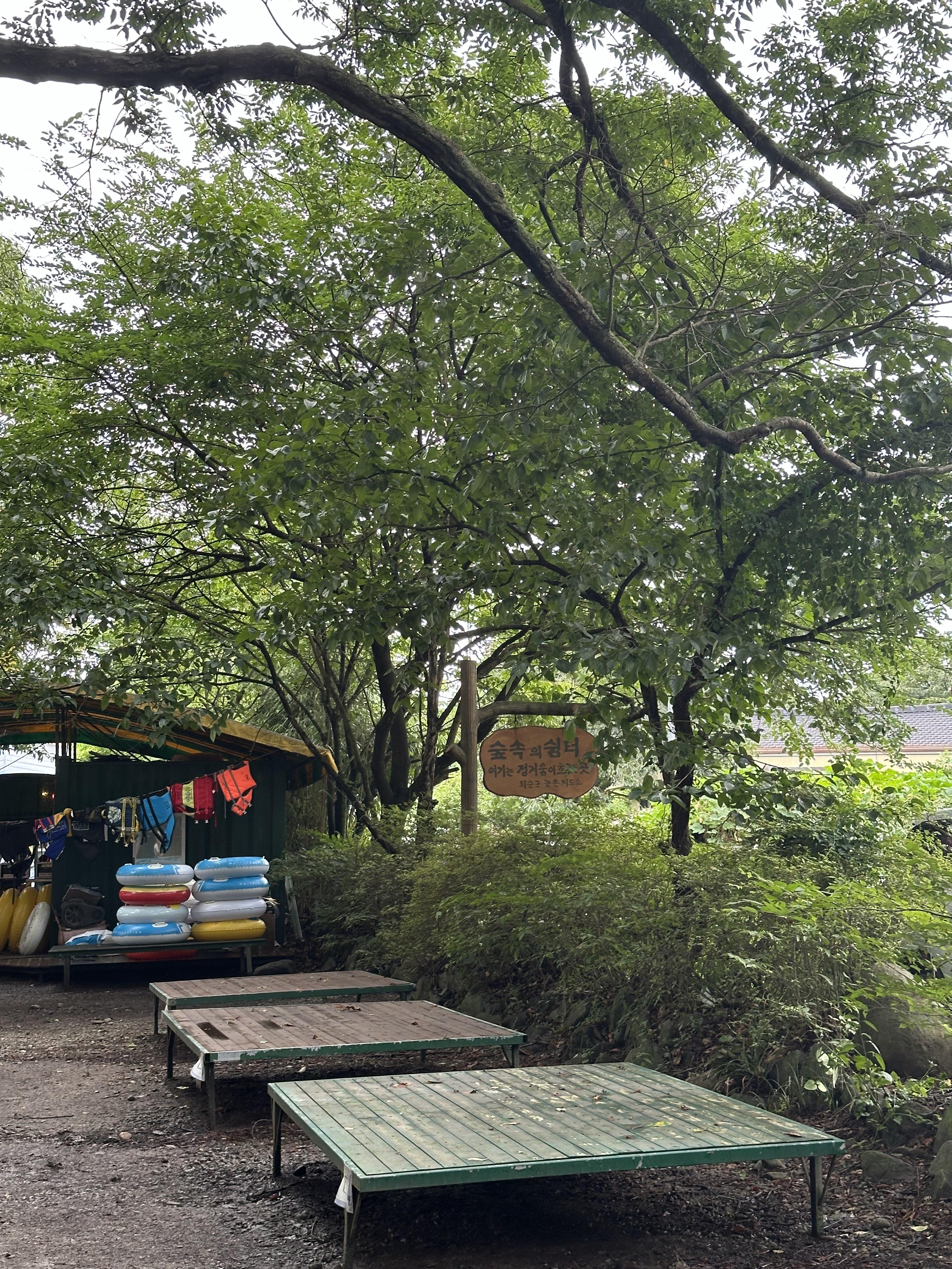 24.7.27 토요일 4시 정도에 방문했는데 사람이 거의 없더라고요. 오후 늦은 시간에 방문에 주차자리는 비교적 한산했고, 날이 흐려서 인지 사람들도 많이 없었어요. 평상도 비어있는 곳이 많았답니다.