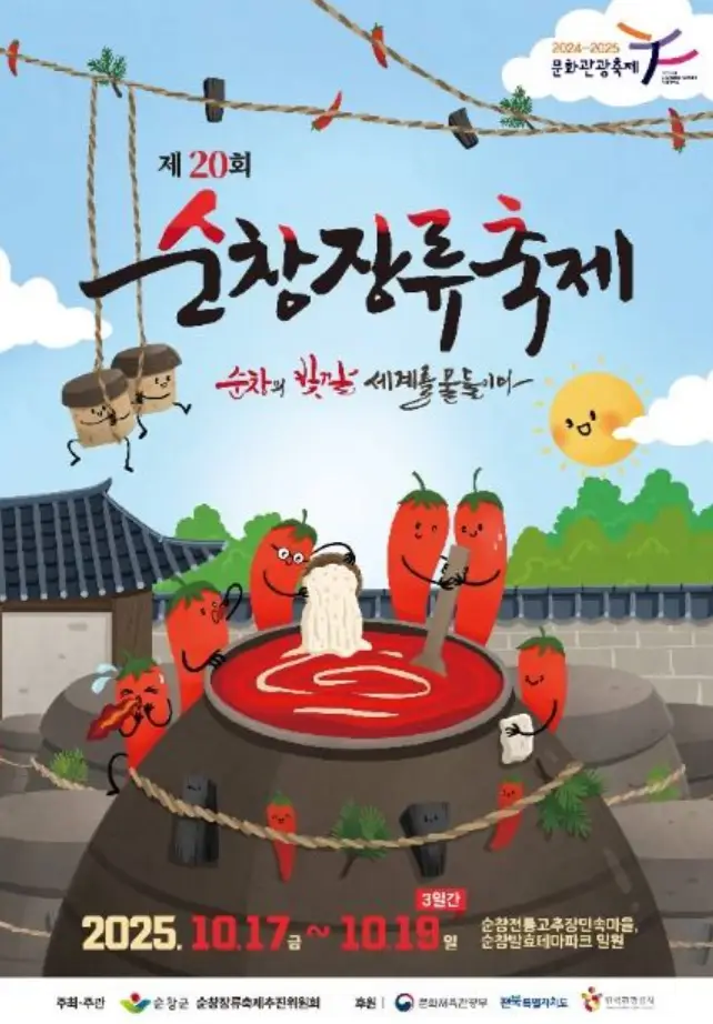 장류로 유명한 순창에서 먹거리 축제를 개최하는데요. 전통 장류를 소재로 한 체험 프로그램과 다양한 먹거리도 제공할 예정이라고 합니다. 운전하면서 순창을 지날 때마다 항상 항아리들이 보였는데요. 순창 고추장 한번 맛보고 싶긴 하네요.