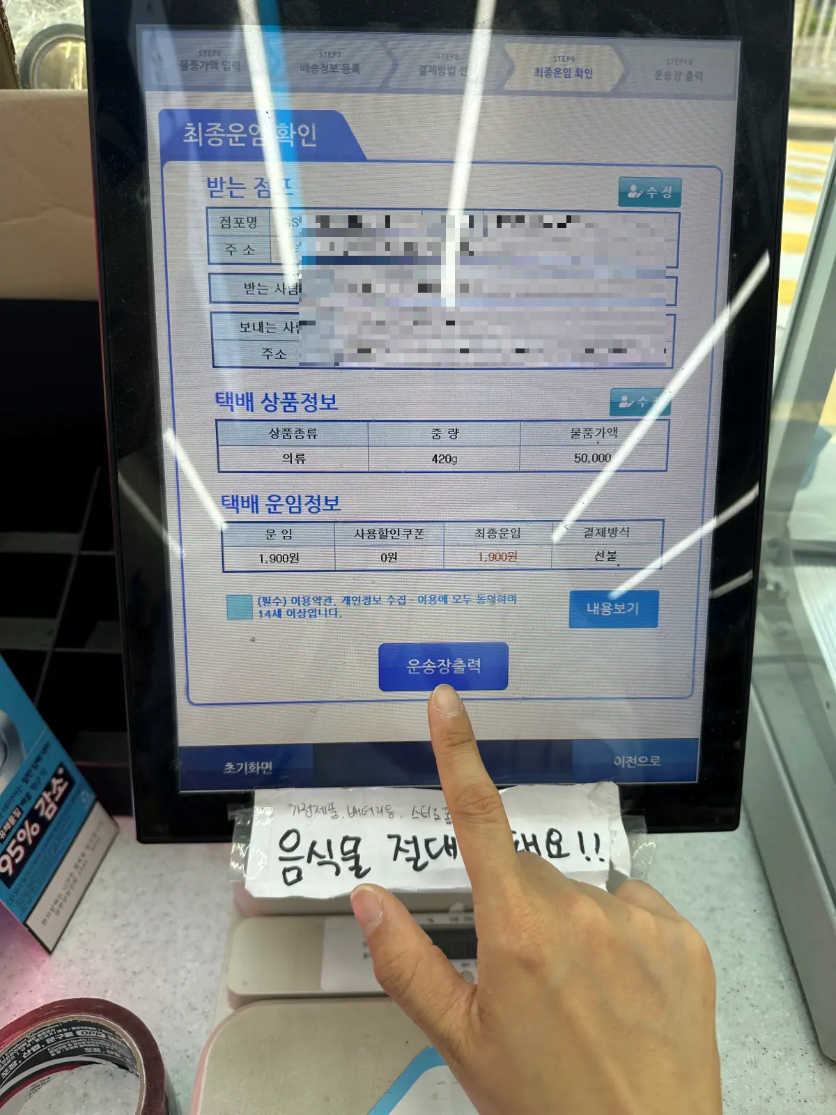 7. 운송장 출력 후 꼭 !!!! 카운터에 보여줘야 배송등록이 완료되요.